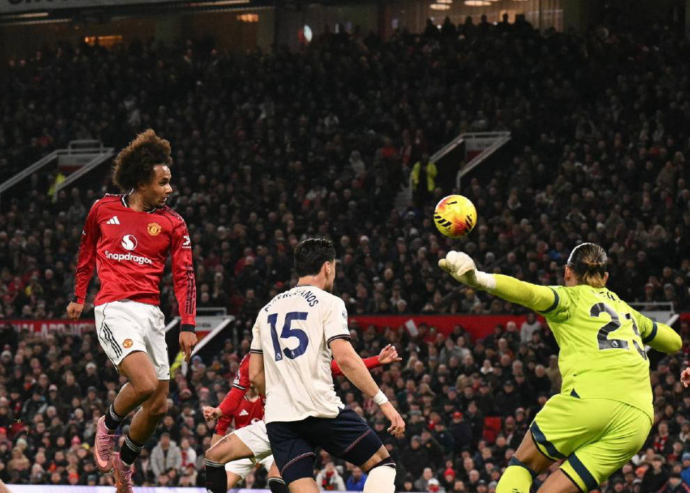 在英超联赛第14轮比赛中,曼联坐镇主场迎战西汉姆联。开场阶段虽然节奏不算快,但双方拼抢异常激烈。上半场23分钟,曼联获得角球机会,姆伯莫与队友配合后,在禁区右侧一脚巧妙的搓射被西汉姆门将阿雷奥拉精彩扑出,随后万比萨卡也在门线上救险,确保比分未被改写。接着28分钟时,达洛特底线倒三角传中,齐尔科泽的垫射被曼联旧将万比萨卡关键解围,曼联随后两次补射也未能转化为进球。40分钟,阿玛德一次倒钩射门稍显偏差,错失破门良机。